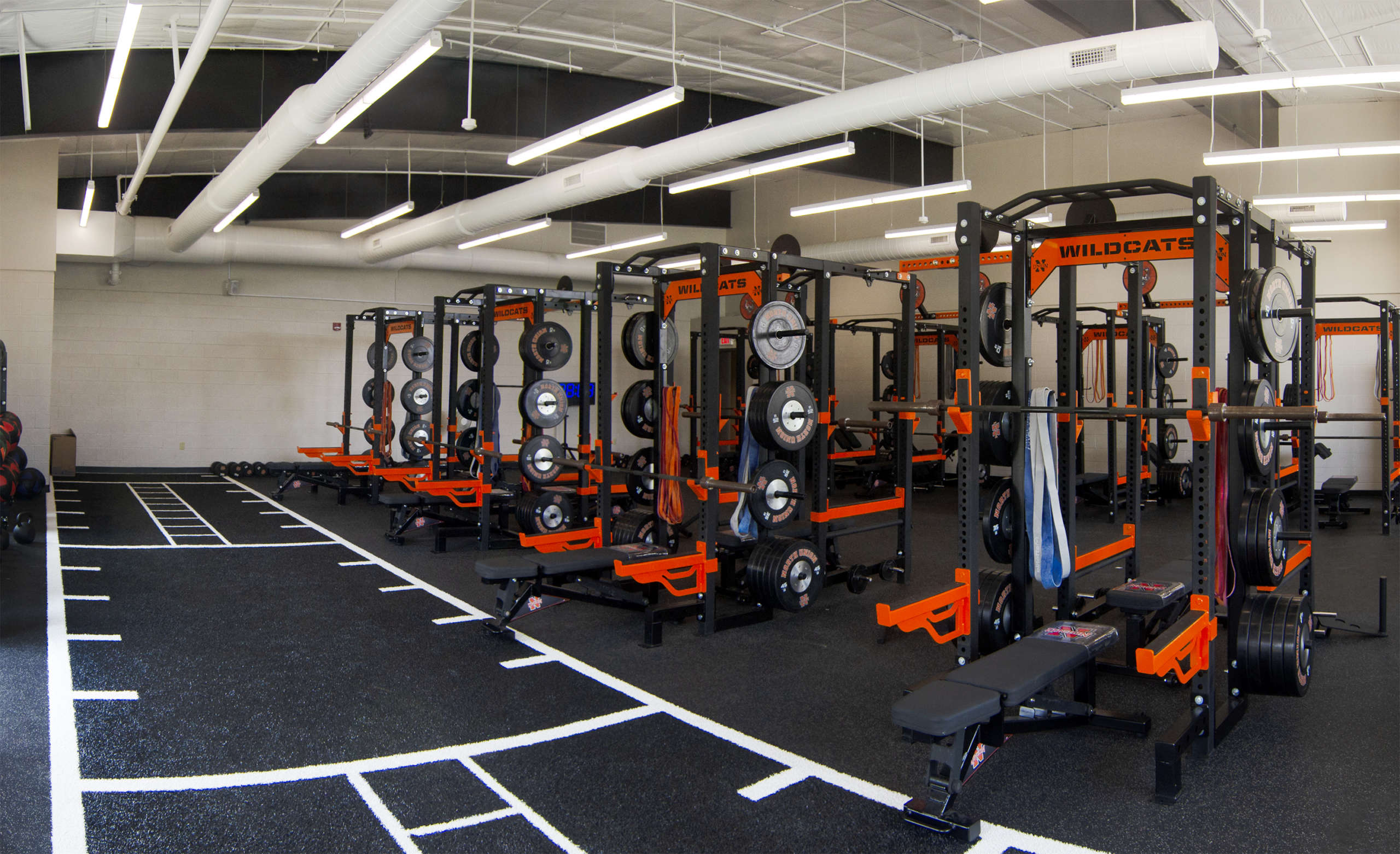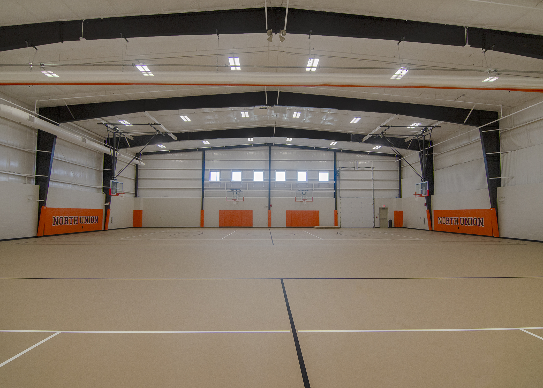 The North Union Athletic Facility has a footprint of 24,500 square ft. The building houses several locker rooms, a weight room, gymnasium, and classrooms. The weight room has 8 identical machines to help keep their student body healthy and strong, and also includes a section of turf where additional drills can be ran. The gymnasium has two full size basketball courts that transform into volleyball courts. The school has future plans to install batting cages as well, making the facility usable for many different sports to practice.
